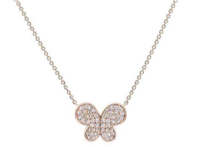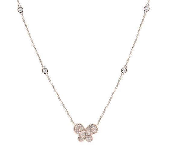1.10CT DIAMOND 18KT ROSE GOLD 3D CLASSIC BUTTERFLY DOUBLE HEART LOVE NECKLACE