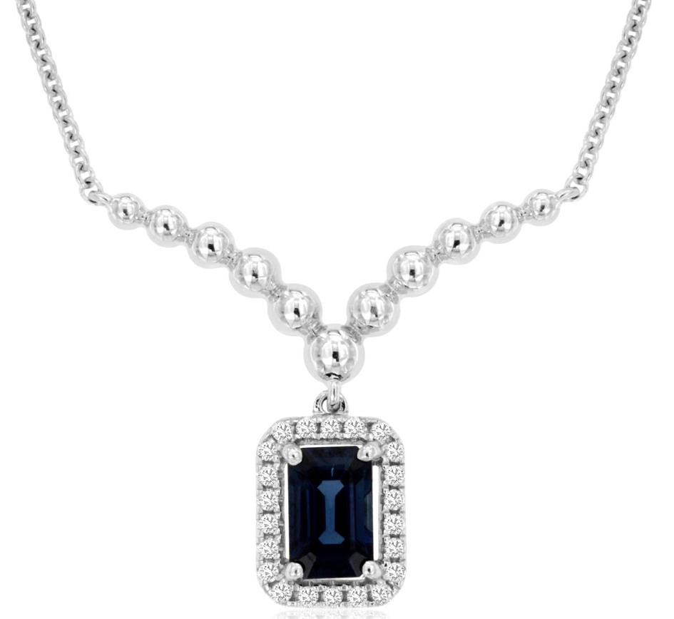 1.10CT DIAMOND & AAA SAPPHIRE 14KT WHITE GOLD EMERALD CUT HALO V SHAPE NECKLACE