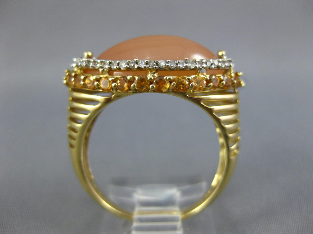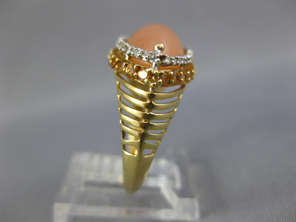 1.10CT DIAMOND & YELLOW SAPPHIRE & PINKISH ORANGE QUARTZ 14KT 2 TONE GOLD RING