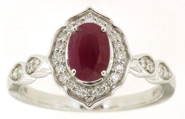 1.11CT DIAMOND & AAA RUBY 14KT WHITE GOLD OVAL & ROUND FILIGREE FLOWER LEAF RING