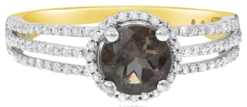 1.11CT DIAMOND & AAA SMOKY TOPAZ 14KT YELLOW GOLD 3D ROUND HALO FLOWER FUN RING