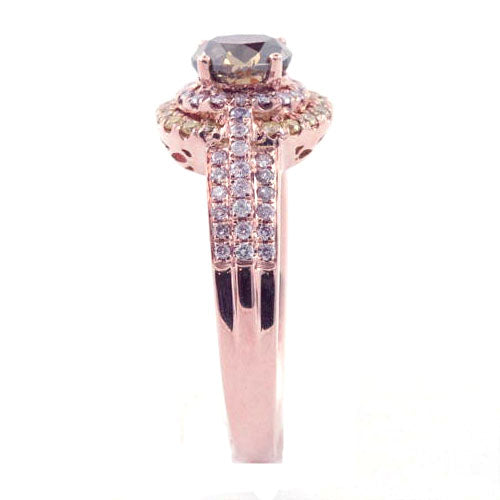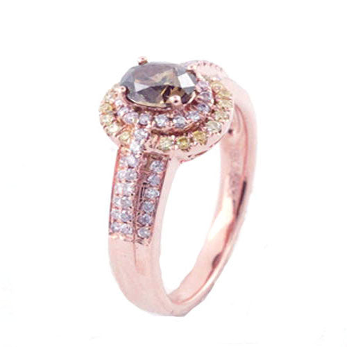 1.11CT PINK MOCHA & FANCY YELLOW DIAMOND 18K ROSE GOLD OVAL HALO ENGAGEMENT RING