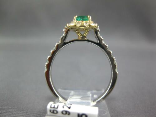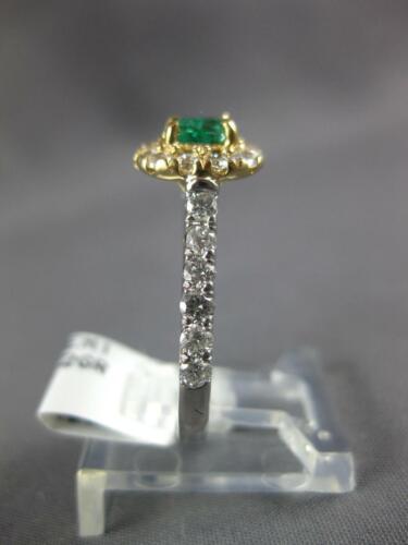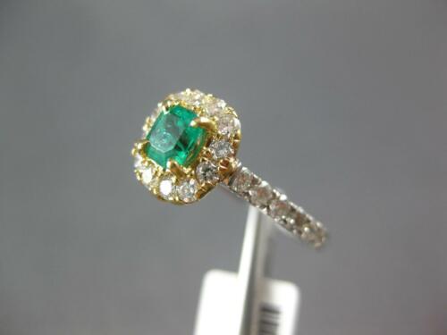 14KT WHITE AND YELLOW GOLD FRIENDSHIP PROMISE RING. 3D CLASSIC HALO DESIGN. ROUND DIAMONDS ARE F/G COLOR, VSSI CLARITY .75 CARATS. AAA SQUARE EMERALD IS .38 CARATS. EMERALD MEAURES 4.6mm X 4.2mm. RING MEASURES 9mm WIDE. RING SIZE 6.5. CAN BE SIZED BY OUR MASTER JEWELER UPON REQUEST. WRITTEN APPRAISAL AVAILABLE. COMES IN A PRESENTABLE GIFT BOX.