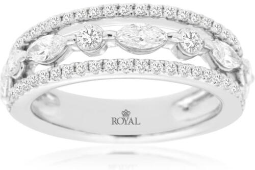 1.15CT DIAMOND 14K WHITE GOLD 3D ROUND & MARQUISE 3 ROW WEDDING ANNIVERSARY RING