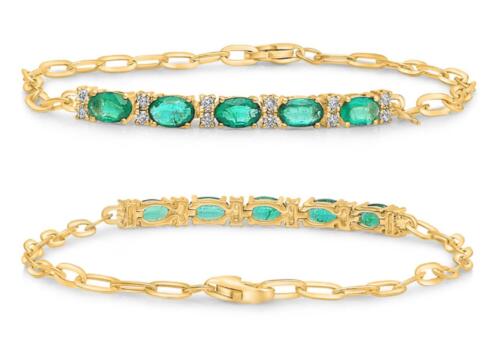 1.15CT DIAMOND & AAA EMERALD 14KT YELLOW GOLD OVAL & ROUND CUFF TENNIS BRACELET