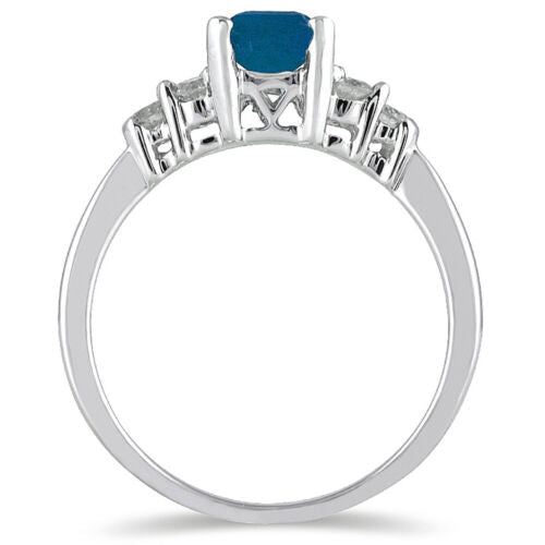 1.15CT DIAMOND & AAA SAPPHIRE 14K WHITE GOLD EMERALD CUT & ROUND ENGAGEMENT RING