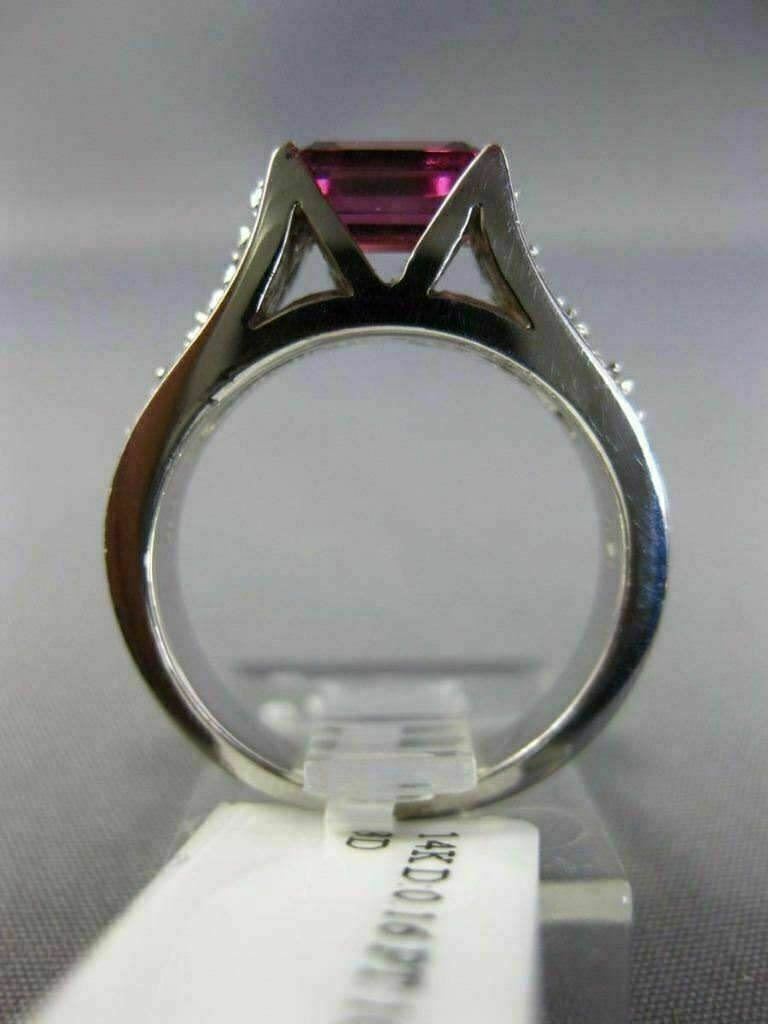 1.16CT DIAMOND & AAA EMERALD CUT PINK TOURMALINE 14KT WHITE GOLD ENGAGEMENT RING