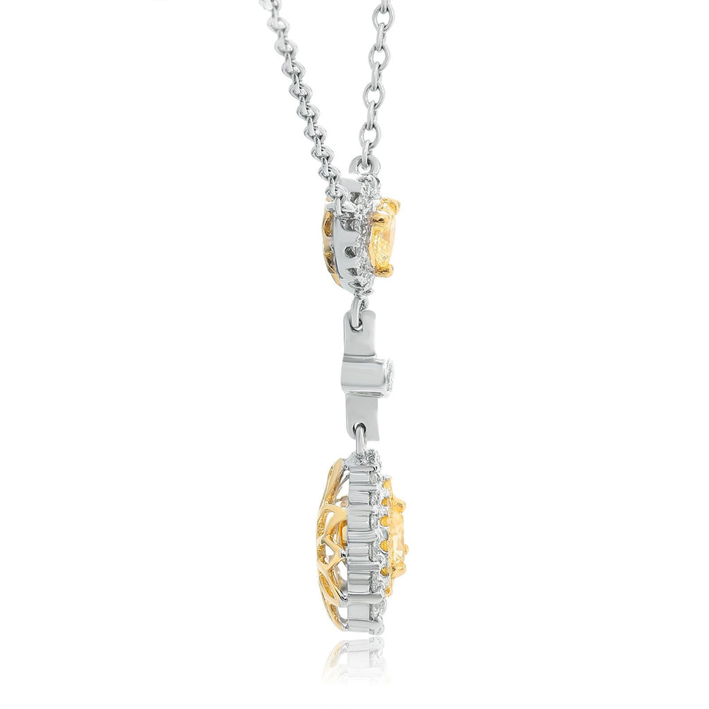 1.16CT WHITE & FANCY YELLOW DIAMOND 18KT 2 TONE GOLD LARIAT HEART DROP NECKLACE