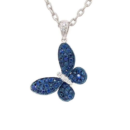 1.17CT DIAMOND & AAA SAPPHIRE 18KT WHITE GOLD 3D BUTTERFLY LOVE FLOATING PENDANT