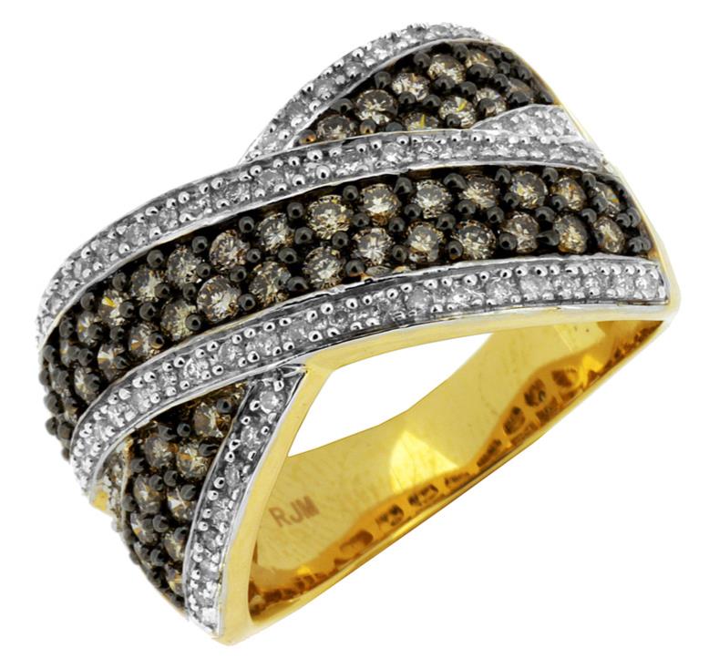 1.17CT WHITE & MOCHA DIAMOND 14KT 2 TONE GOLD MULTI ROW CRISS CROSS X LOVE RING