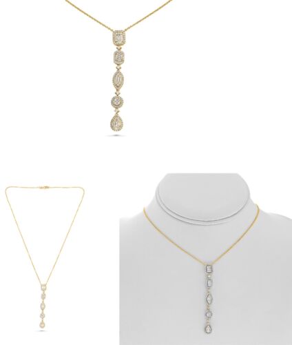 1.18CT DIAMOND 14KT YELLOW GOLD ROUND & BAGUETTE INVISIBLE MULTI SHAPE NECKLACE