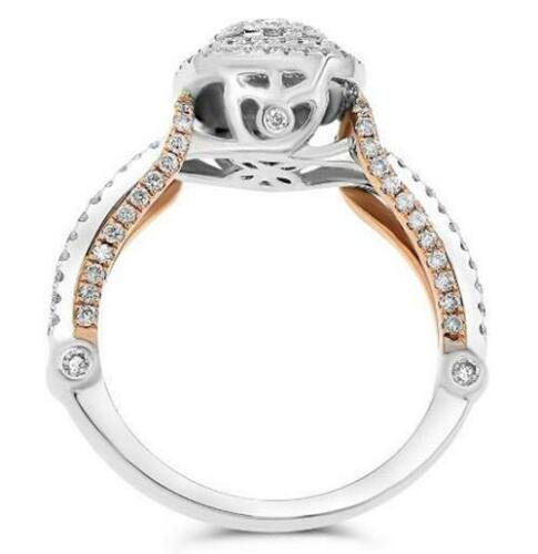 1.18CT DIAMOND 18KT WHITE & ROSE GOLD ROUND CLUSTER SQUARE DOUBLE HALO FUN RING