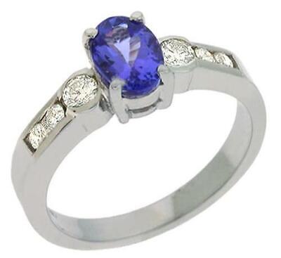 14KT WHITE GOLD ENGAGEMENT RING. 3D CLASSIC DESIGN. ROUND DIAMONDS ARE F/G COLOR, VSSI CLARITY .29 CARATS. AAA OVAL TANZANITE IS .90 CARATS. RING SIZE 6.5. CAN BE SIZED BY OUR MASTER JEWELER UPON REQUEST. WRITTEN APPRAISAL AVAILABLE. COMES IN A PRESENTABLE GIFT BOX.