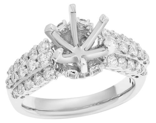 1.20CT DIAMOND 14KT WHITE GOLD 3D ROUND 6 PRONG 3 ROW SEMI MOUNT ENGAGEMENT RING