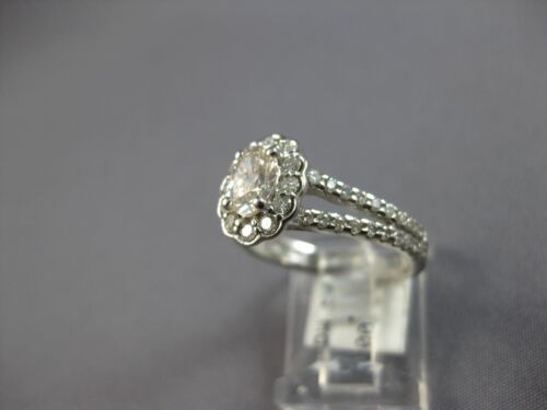 14KT WHITE GOLD ENGAGEMENT RING. 3D FLORAL DESIGN. ROUND WHITE DIAMONDS ARE F/G COLOR, VSSI CLARITY .63 CARATS. CENTER ROUND LIGHT CHOCOLATE FANCY DIAMOND IS .57 CARATS. MEASURES 10mm WIDE. RING SIZE 6.5. CAN BE SIZED BY OUR JEWELER UPON REQUEST. WRITTEN APPRAISAL AVAILABLE. COMES IN A PRESENTABLE GIFT BOX.