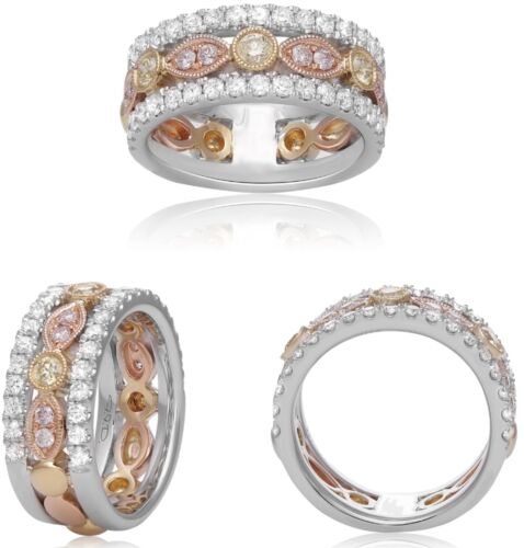 1.21CT WHITE PINK & FANCY YELLOW DIAMOND 18KT TRI COLOR GOLD 3D ANNIVERSARY RING