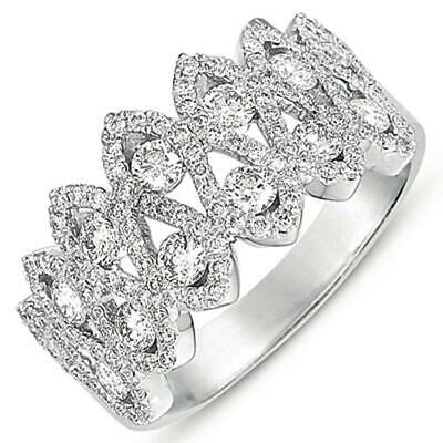 14KT WHITE GOLD FUN ANNIVERSARY RING. 3D MULTI ROW CRISS CROSS ETOILE DESIGN. ROUND DIAMONDS ARE F/G COLOR, VSSI CLARITY 1.22 CARATS. MEASURES 11mm WIDE. RING SIZE 6.5. CAN BE SIZED BY OUR MASTER JEWELER UPON REQUEST. WRITTEN APPRAISAL AVAILABLE. COMES IN A PRESENTABLE GIFT BOX.