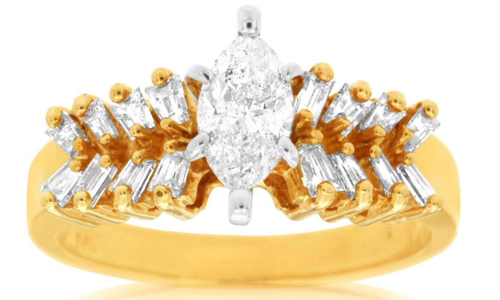 1.22CT DIAMOND 14KT YELLOW GOLD 3D MARQUISE & BAGUETTE CLASSIC ENGAGEMENT RING