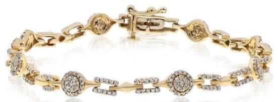 14KT YELLOWGOLD LOVE TENNISBRACELET. 3D MULTI FLOWER LINKDESIGN. SQUAREDIAMONDS ARE F/G COLOR, VSSI CLARITY 1.22 CARATS. 7" INCHES LONG. WRITTEN APPRAISAL AVAILABLE. COMES IN A PRESENTABLE GIFT BOX.