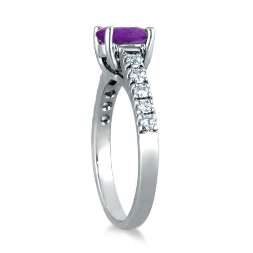 1.23CT DIAMOND & AAA AMETHYST 14K WHITE GOLD OVAL & ROUND LUCIDA FRIENDSHIP RING