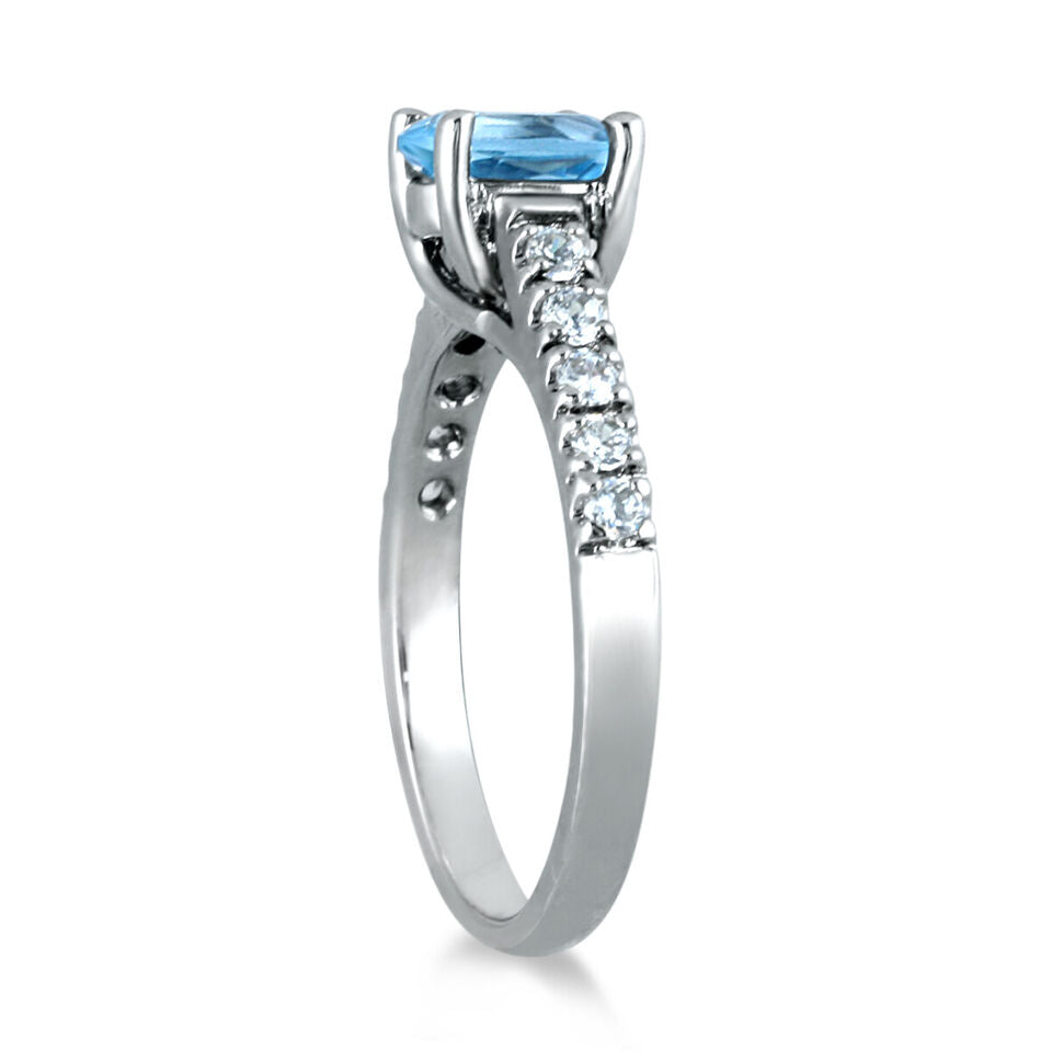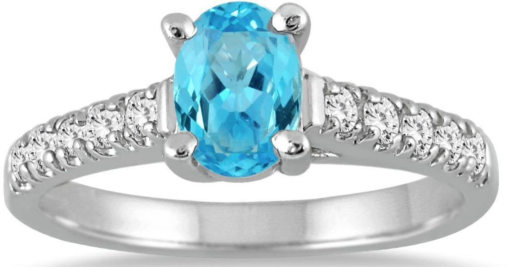 14KT WHITE GOLD FUN RING. 3D CLASSIC LUCIDA DESIGN. ROUND DIAMONDS ARE G/H COLOR, SI CLARITY .23 CARATS. AAA EXTRA FACETED OVAL BLUE TOPAZ IS 1.0 CARAT. RING SIZE 6.5. CAN BE SIZED BY OUR MASTER JEWELER UPON REQUEST. WRITTEN APPRAISAL AVAILABLE. COMES IN A PRESENTABLE GIFT BOX.