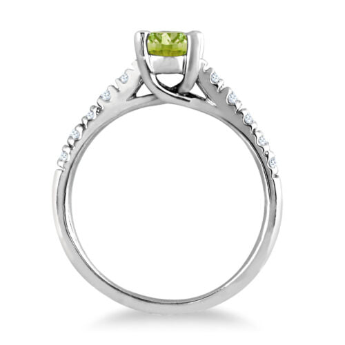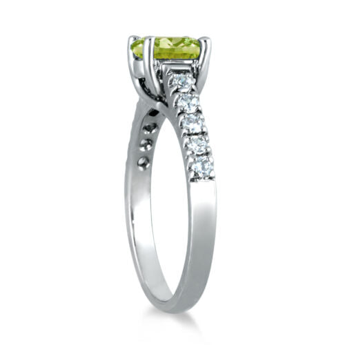 1.23CT DIAMOND & AAA PERIDOT 14KT WHITE GOLD OVAL & ROUND LUCIDA ENGAGEMENT RING