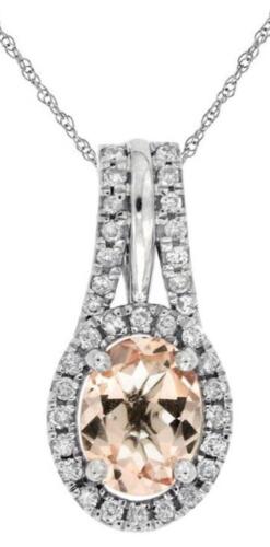 14KT WHITE GOLD FLOATING PENDANT. 3D HALO TEAR DROP DESIGN. ROUND DIAMONDS ARE F/G COLOR, VSSI CLARITY .24 CARATS. AAA EXTRA FACETED OVAL MORGANITE IS 1.0 CARAT. COMES ON A 14KT GOLD DIAMOND CUT 16" INCH CHAIN. WRITTEN APPRAISAL AVAILABLE. COMES IN A PRESENTABLE GIFT BOX.
