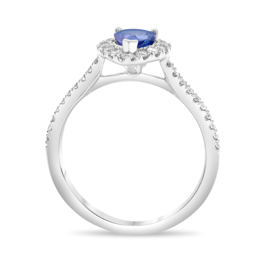 1.24CT DIAMOND & AAA SAPPHIRE 18KT WHITE GOLD PEAR SHAPE & ROUND ENGAGEMENT RING