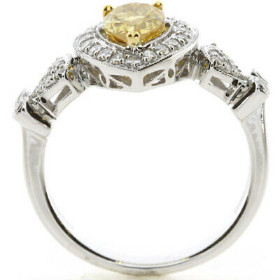 18KT WHITE AND YELLOW GOLD ENGAGEMENT RING. 3D HALO DESIGN. ROUND WHITE DIAMONDS ARE F/G COLOR, VSSI CLARITY .38 CARATS. PEAR SHAPE FANCY YELLOW DIAMOND IS .86 CARATS. RING SIZE 7. CAN BE SIZED BY OUR MASTER JEWELER UPON REQUEST. WRITTEN APPRAISAL AVAILABLE. COMES IN A PRESENTABLE GIFT BOX.