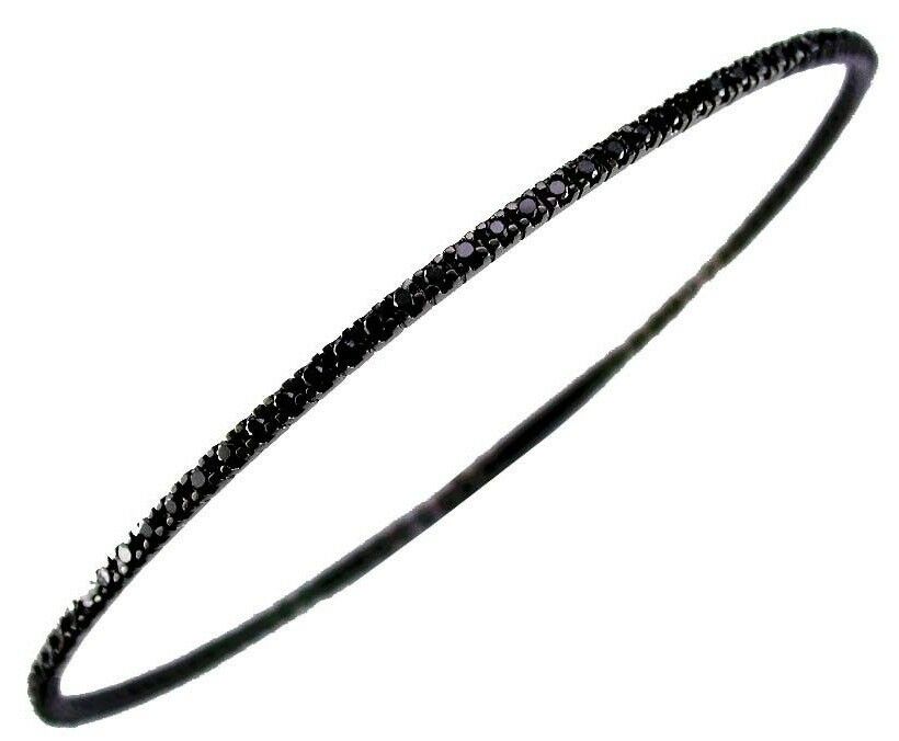 1.25CT BLACK DIAMOND 14KT WHITE GOLD 3D ETERNITY 2mm BANGLE BRACELET