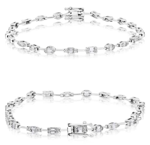 1.25CT DIAMOND 14KT WHITE GOLD ROUND & BAGUETTE MULTI SHAPE MULTI LINK BRACELET