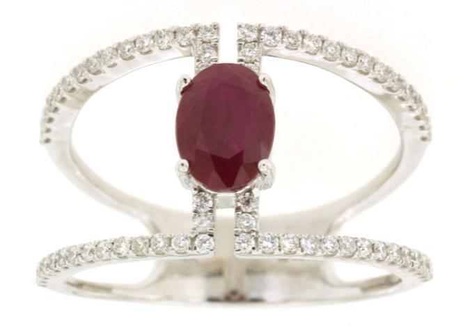 1.25CT DIAMOND & AAA RUBY 14KT WHITE GOLD OVAL & ROUND DOUBLE V SHAPE FUN RING