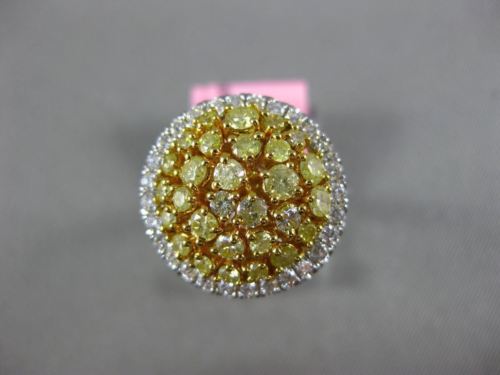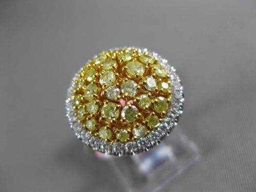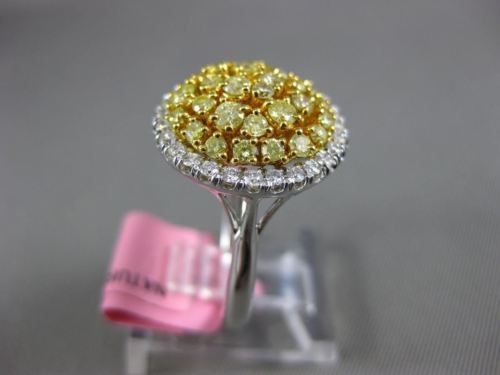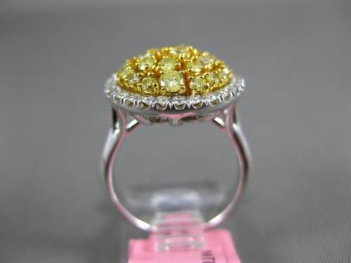 ESTATE 18KT WHITE AND YELLOW GOLD ANNIVERSARY RING. 3D CLASSIC CLUSTER ROUND DESIGN. DIAMONDS ARE F/G COLOR, VSSI CLARITY .34 CARATS. FANCY YELLOW DIAMONDS ARE .91 CARATS. MEASURES 16mm WIDE. RING SIZE 6.25. CAN BE SIZED BY OUR MASTER JEWELERS UPON REQUEST. WRITTEN APPRAISAL AVAILABLE. COMES IN A PRESENTABLE GIFT BOX.