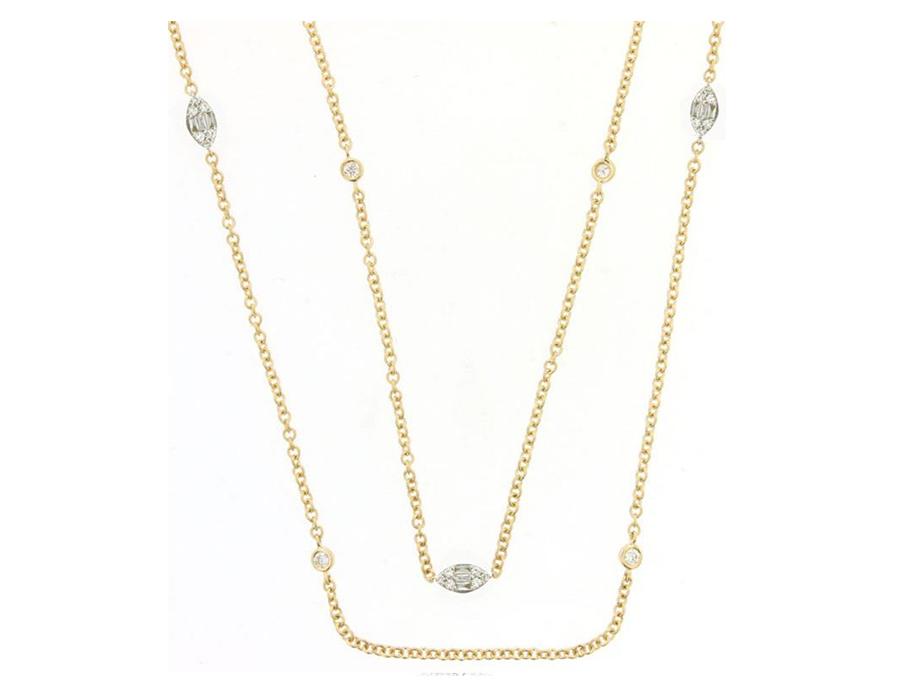 1.27CT DIAMOND 14KT YELLOW GOLD ROUND & MARQUISE SHAPE BY THE YARD FUN NECKLACE