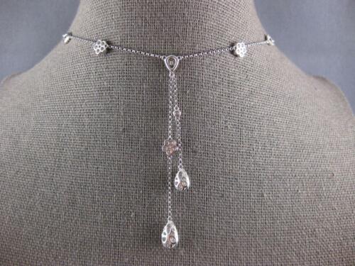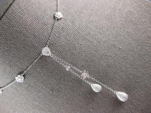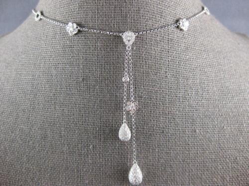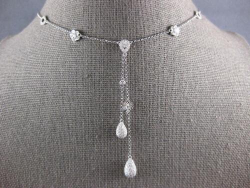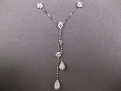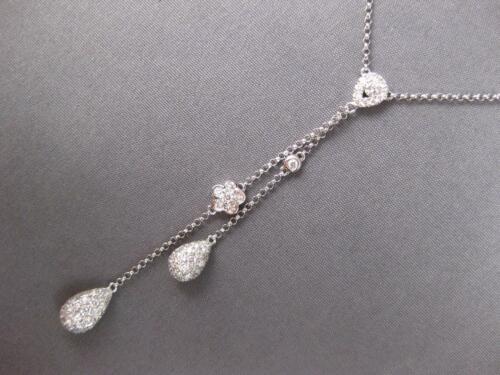 1.27CT DIAMOND 18KT WHITE GOLD FLOWER TEAR DROP LARIAT CHANDELIER LOVE NECKLACE
