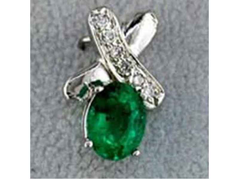14KT WHITE GOLD LOVE FLOATING PENDANT. 3D X DESIGN. DIAMONDS ARE F/G COLOR, VSSI CLARITY .07 CARATS. AAA OVAL EMERALD IS 1.20 CARATS. COMES ON A 14KT GOLD DIAMOND CUT 18" INCH CHAIN. WRITTEN APPRAISAL AVAILABLE. COMES IN A PRESENTABLE GIFT BOX.