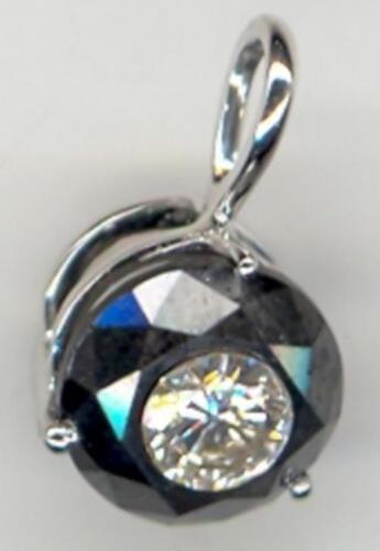 14KT WHITE GOLD FLOATING PENDANT. 3D SOLITAIRE CLASSIC DESIGN. ROUND WHITE DIAMONDS ARE F/G COLOR, VSSI CLARITY .13 CARATS. ROUND BLACK DIAMONDS ARE 1.14 CARATS. COMES ON A 14KT GOLD DIAMOND CUT 16" INCH CHAIN. WRITTEN APPRAISAL AVAILABLE. COMES IN A PRESENTABLE GIFT BOX.