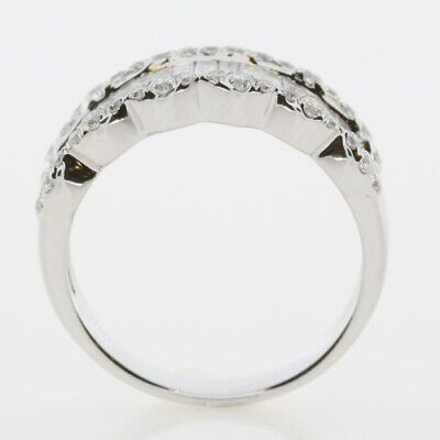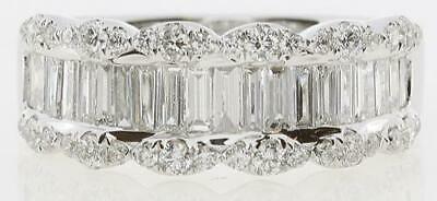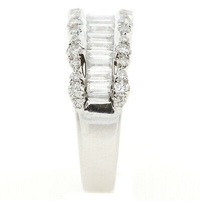 WIDE 18KT WHITE GOLD ANNIVERSARY RING. 3D CLASSIC SEMI ETERNITY DESIGN. DIAMONDS ARE F/G COLOR, VSSI CLARITY. ROUND DIAMONDS ARE .45 CARATS. BAGUETTE DIAMONDS ARE .83 CARATS. RING SIZE 7. CAN BE SIZED BY OUR MASTER JEWELER UPON REQUEST. WRITTEN APPRAISAL AVAILABLE. COMES IN A PRESENTABLE GIFT BOX.
