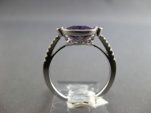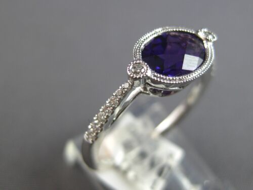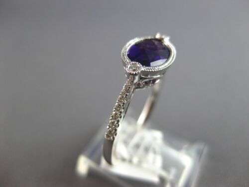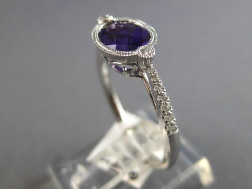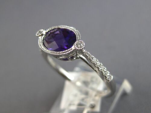 14KT WHITE GOLD FRIENDSHIP LOVE RING. 3D FILIGREE DESIGN. ROUND DIAMONDS ARE F/G COLOR, VSSI CLARITY .13 CARATS. AAA EXTRA FACETED OVAL AMETHYST IS 1.15 CARATS. MEASURES 7mm WIDE. RING SIZE 6. CAN BE SIZED BY OUR MASTER JEWELER UPON REQUEST. WRITTEN APPRAISAL AVAILABLE. COMES IN A PRESENTABLE GIFT BOX.