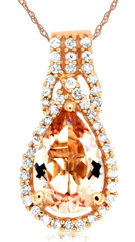 1.28CT DIAMOND & AAA MORGANITE 14K ROSE GOLD PEAR SHAPE & ROUND FLOATING PENDANT
