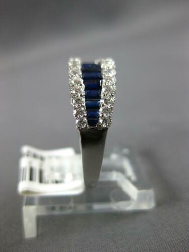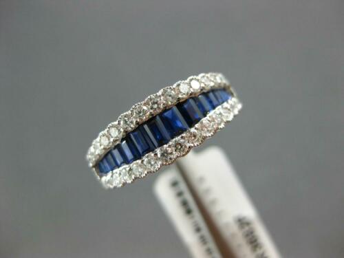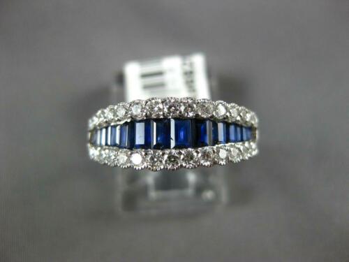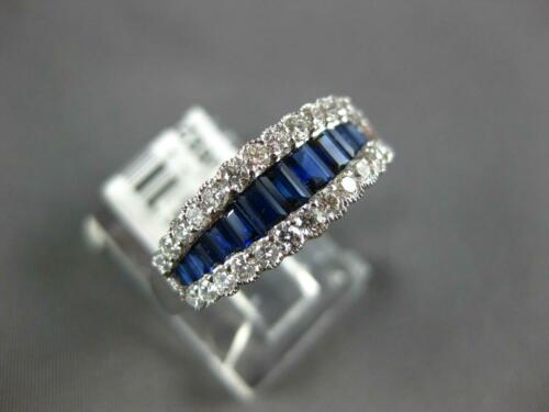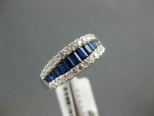 18KT WHITE GOLD ANNIVERSARY RING. 3D CLASSIC GRADUATING DESIGN. ROUND DIAMONDS ARE F/G COLOR, VSSI CLARITY .47 CARATS. AAA BAGUETTE SAPPHIRES ARE .82 CARATS. MEASURES 7mm WIDE. RING SIZE 7. CAN BE SIZED BY OUR MASTER JEWELER UPON REQUEST. WRITTEN APPRAISAL AVAILABLE. COMES IN A PRESENTABLE GIFT BOX.