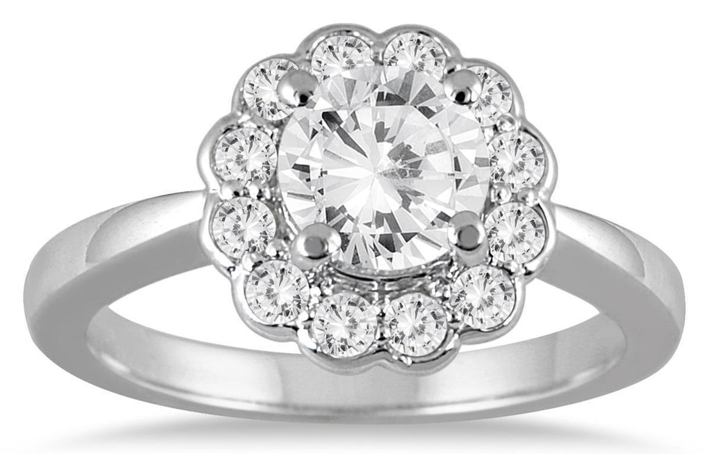 14KT WHITE GOLD ENGAGEMENT RING. 3D SOLITAIRE FLOWER SEMI BEZEL DESIGN. ROUND DIAMONDS ARE G/H COLOR, SI CLARITY 1.25 CARATS. RING SIZE 6.5. CAN BE SIZED BY OUR MASTER JEWELER UPON REQUEST.
