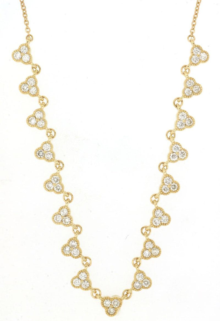 1.30CT DIAMOND 14KT YELLOW GOLD 3D MULTI FLOWER FILIGREE SEMI ETERNITY NECKLACE