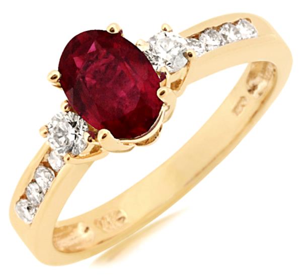 1.30CT DIAMOND & AAA RUBY 14KT YELLOW GOLD OVAL & ROUND 3 STONE ENGAGEMENT RING