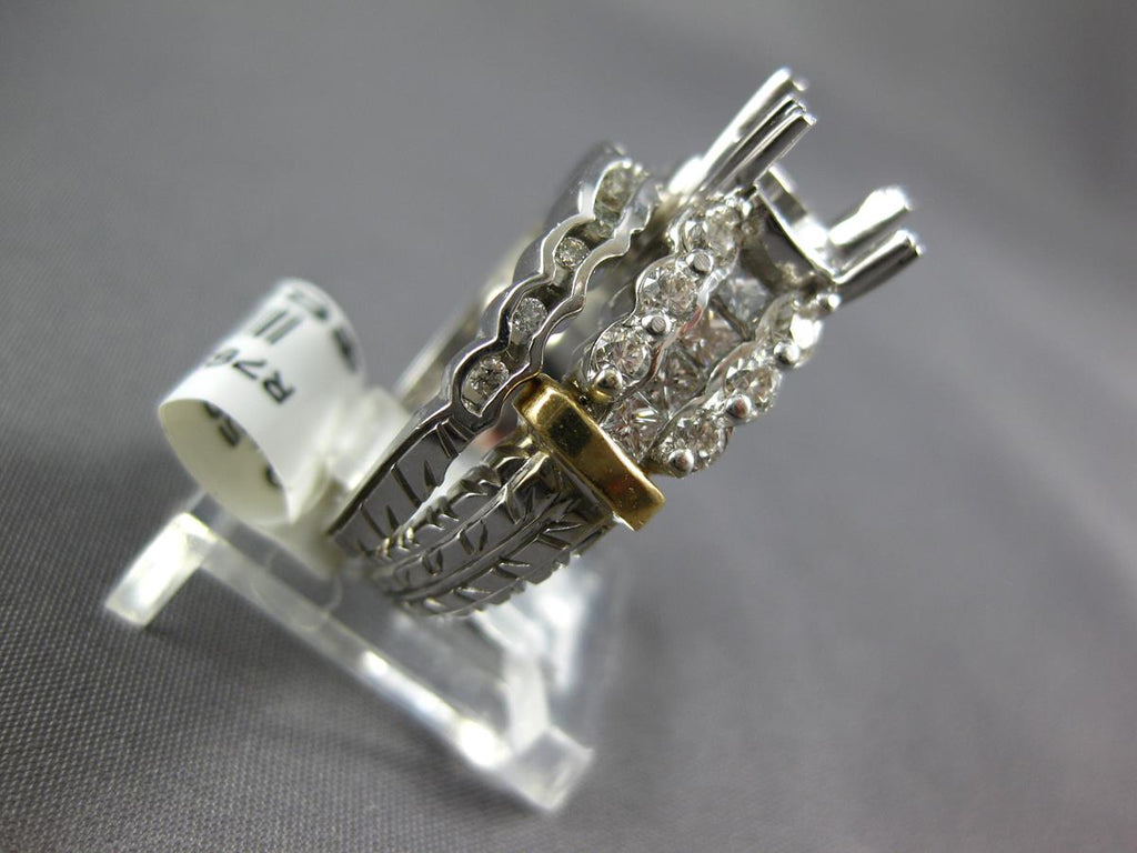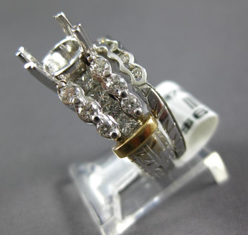 14KT WHITE AND YELLOWGOLD WEDDING ENGAGEMENT RING SET. 3D SEMI MOUNTDESIGN. ROUND AND PRINCESSDIAMONDS ARE F/G COLOR, VSSI CLARITY ARE 1.31 CARATS. FITS UP TO 8MM STONE.MEASURES 8mm WIDE. RING SIZE IS 7. CAN BE SIZED BY OUR MASTER JEWELER UPON REQUEST. WRITTEN APPRAISAL AVAILABLE. COMES IN A PRESENTABLE GIFT BOX.