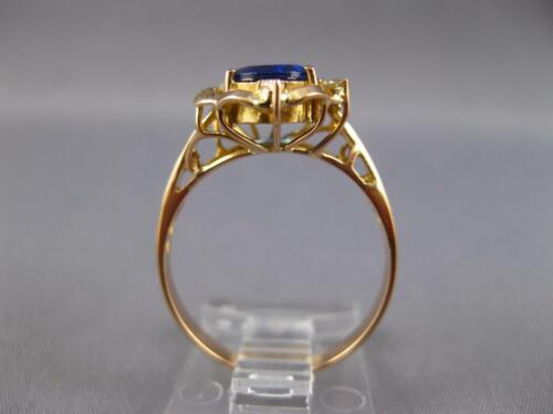 1.31CT DIAMOND & AAA SAPPHIRE 14KT YELLOW GOLD OVAL & ROUND FLOWER RING #27369