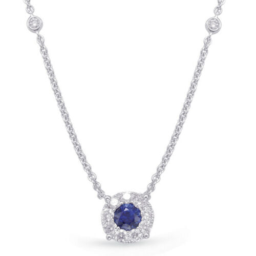 1.32CT DIAMOND & AAA SAPPHIRE 14K WHITE GOLD 3D FLOWER BY THE YARD LOVE NECKLACE