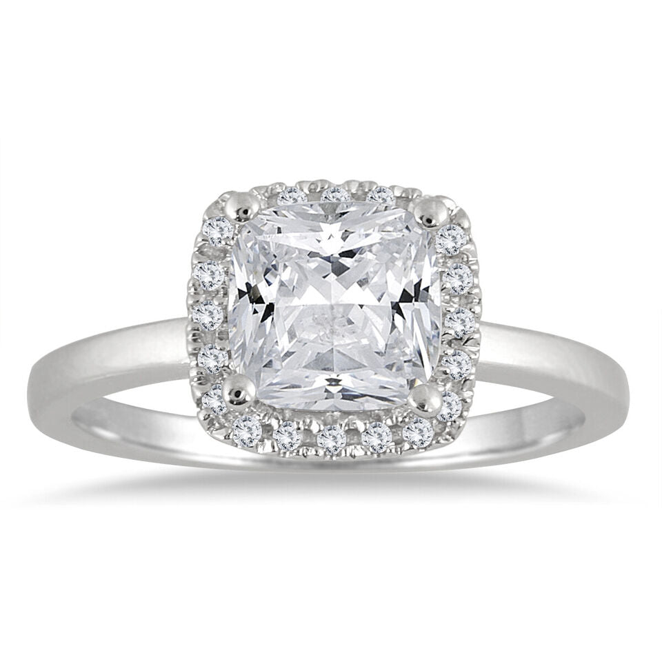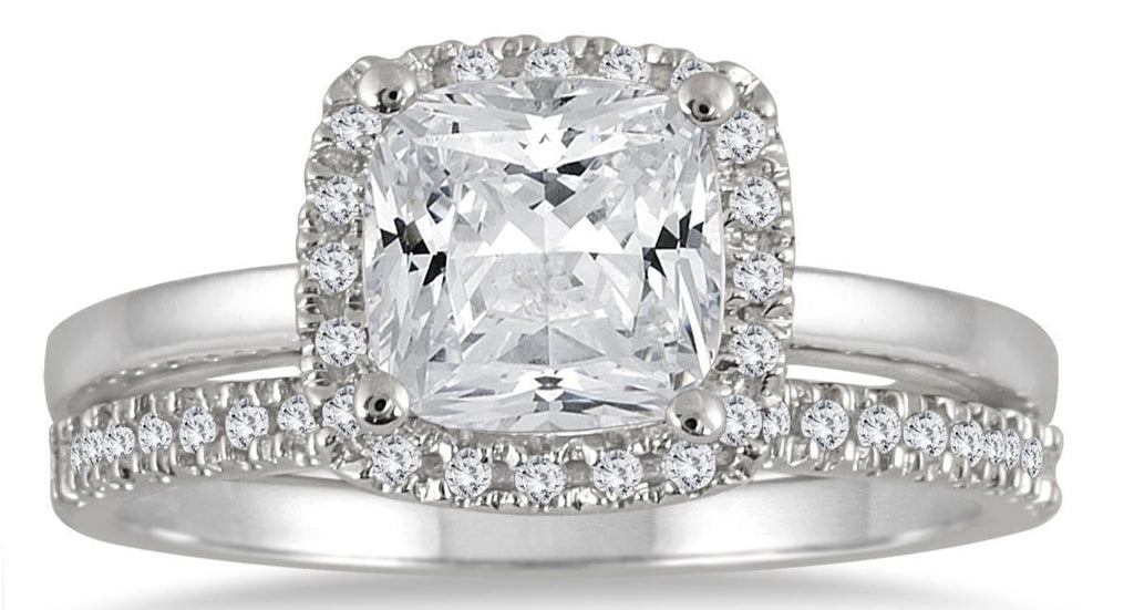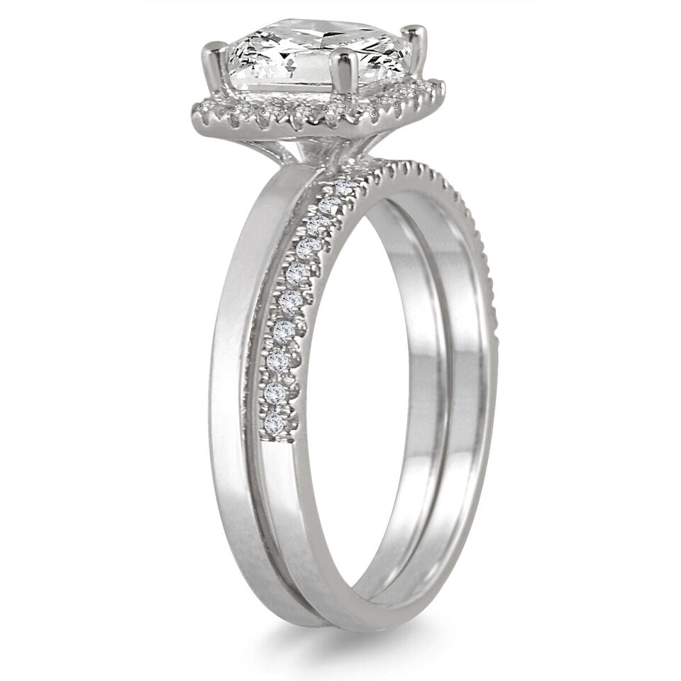 1.33CT DIAMOND 14K WHITE GOLD CUSHION & ROUND SQUARE ENGAGEMENT WEDDING RING SET