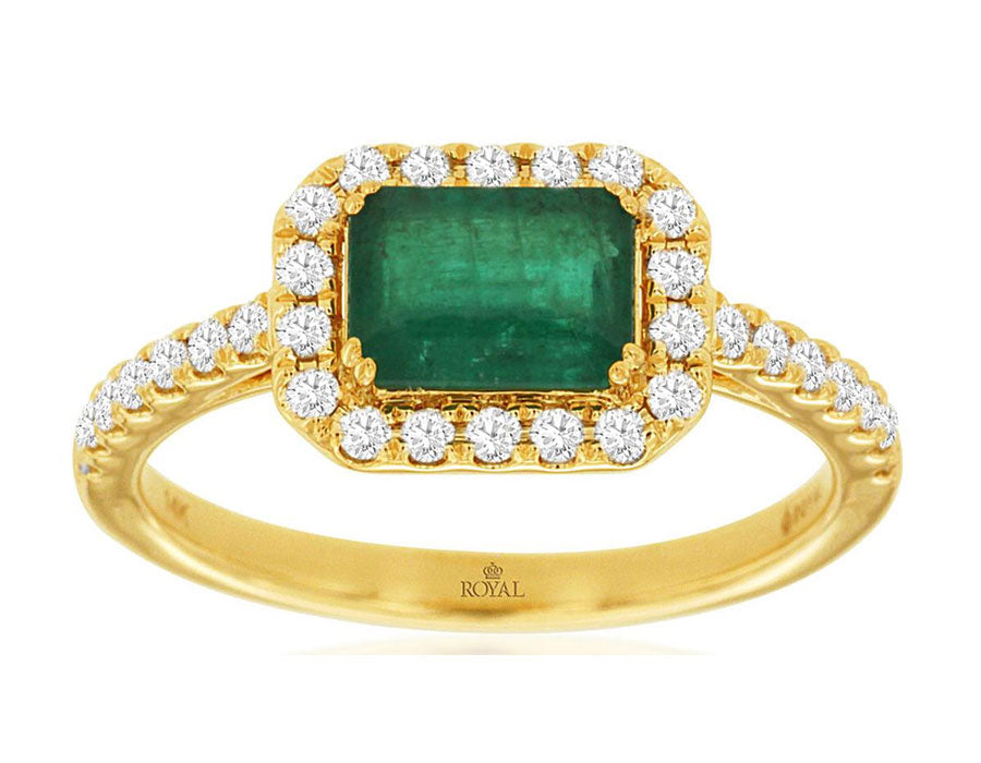 1.33CT DIAMOND & AAA EMERALD 14K YELLOW GOLD 3D EMERALD CUT & ROUND OCTAGON RING