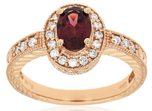 1.33CT DIAMOND & AAA RHODOLITE 14KT ROSE GOLD OVAL & ROUND HALO ENGAGEMENT RING